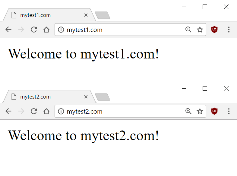 Once you’ve saved you hosts file, you should be able to access mytest1.com and mytest2.com in your browser.